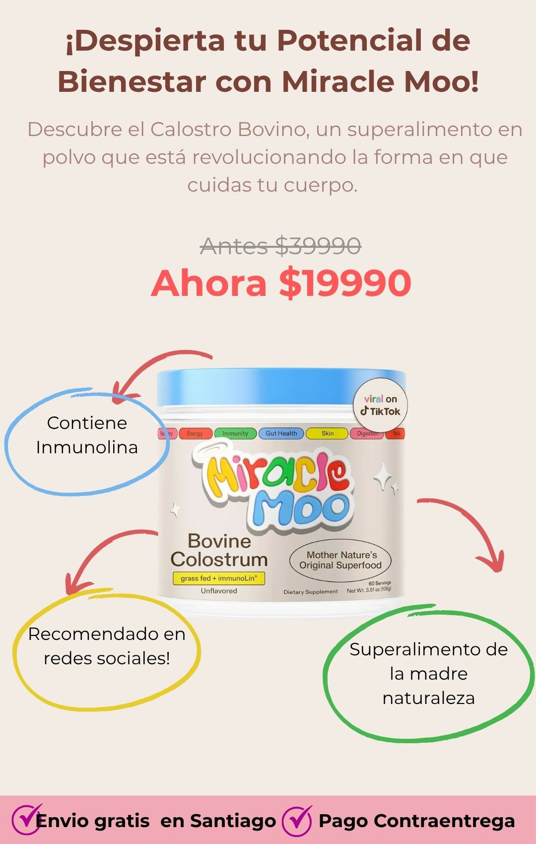 {"id":10244249092277,"title":"MIRACLE MOO CALOSTRO BOVINO","handle":"miracle-moo-calostro","description":"\u003cp data-path-to-node=\"0\"\u003e¡Absolutamente! Convertiré este texto informativo en un mensaje comercial potente y persuasivo, centrándome en los beneficios que el cliente obtendrá.\u003c\/p\u003e\n\u003chr data-path-to-node=\"1\"\u003e\n\u003ch2 data-path-to-node=\"2\"\u003e✨ ¡Transforma Tu Salud Desde Adentro con Miracle Moo!\u003c\/h2\u003e\n\u003cp data-path-to-node=\"3\"\u003e\u003cb\u003e¿Listo para redescubrir tu bienestar y energía?\u003c\/b\u003e\u003c\/p\u003e\n\u003cp data-path-to-node=\"4\"\u003e\u003cb\u003eMiracle Moo Colostrum Powder\u003c\/b\u003e es el impulso natural que tu cuerpo estaba esperando. Este suplemento rico en nutrientes es tu aliado esencial para \u003cb\u003erevivir tu salud inmunológica\u003c\/b\u003e y \u003cb\u003eoptimizar tu bienestar intestinal\u003c\/b\u003e. Con cada dosis, nutres la reparación de tus tejidos, mejoras la digestión y enciendes tu \u003cb\u003evitalidad general\u003c\/b\u003e para enfrentar cada día al máximo.\u003c\/p\u003e\n\u003chr data-path-to-node=\"5\"\u003e\n\u003ch3 data-path-to-node=\"6\"\u003eLo que nos hace ÚNICOS: La Doble Potencia\u003c\/h3\u003e\n\u003ch4 data-path-to-node=\"7\"\u003e🔑 \u003cb\u003eIMMUNOLIN: El Calostro Nivel Experto\u003c\/b\u003e\n\u003c\/h4\u003e\n\u003cp data-path-to-node=\"8\"\u003eMiracle Moo no es un calostro cualquiera. Contiene \u003cb\u003eImmunolin\u003c\/b\u003e, un ingrediente exclusivo que lleva el apoyo intestinal al siguiente nivel. \u003cb\u003eFortalece tu inmunidad de raíz\u003c\/b\u003e, ayuda a \u003cb\u003edesbloquear el bienestar total\u003c\/b\u003e y trabaja activamente para \u003cb\u003efrenar la inflamación\u003c\/b\u003e.\u003c\/p\u003e\n\u003ch4 data-path-to-node=\"9\"\u003e🔬 \u003cb\u003eCOLOSTRUM: Resultados Comprobados\u003c\/b\u003e\n\u003c\/h4\u003e\n\u003cp data-path-to-node=\"10\"\u003eGarantizamos máxima calidad y validación científica. Nuestro notable polvo de calostro de élite ofrece un extraordinario \u003cb\u003e30 % de IgG (inmunoglobulinas vitales)\u003c\/b\u003e y una dosis adicional de \u003cb\u003eIgG de Immunolin\u003c\/b\u003e. Esta fórmula avanzada:\u003c\/p\u003e\n\u003cul data-path-to-node=\"11\"\u003e\n\u003cli\u003e\n\u003cp data-path-to-node=\"11,0,0\"\u003e\u003cb\u003eMejora profundamente tu inmunidad.\u003c\/b\u003e\u003c\/p\u003e\n\u003c\/li\u003e\n\u003cli\u003e\n\u003cp data-path-to-node=\"11,1,0\"\u003e\u003cb\u003eFortalece tu intestino.\u003c\/b\u003e\u003c\/p\u003e\n\u003c\/li\u003e\n\u003cli\u003e\n\u003cp data-path-to-node=\"11,2,0\"\u003e\u003cb\u003eFomenta un bienestar holístico y duradero.\u003c\/b\u003e\u003c\/p\u003e\n\u003c\/li\u003e\n\u003c\/ul\u003e\n\u003cp data-path-to-node=\"12\"\u003e\u003cb\u003eAdopta Miracle Moo: la promesa de un cuerpo más fuerte y una vida más vital. ¡Es hora de sentir la diferencia!\u003c\/b\u003e\u003c\/p\u003e","published_at":"2025-09-29T10:10:50-03:00","created_at":"2025-09-29T10:10:50-03:00","vendor":"Chic Express","type":"Salud","tags":[],"price":2999,"price_min":2999,"price_max":2999,"available":false,"price_varies":false,"compare_at_price":4899,"compare_at_price_min":4899,"compare_at_price_max":4899,"compare_at_price_varies":false,"variants":[{"id":51814312214709,"title":"Default Title","option1":"Default Title","option2":null,"option3":null,"sku":"V1RGEN","requires_shipping":true,"taxable":false,"featured_image":null,"available":false,"name":"MIRACLE MOO CALOSTRO BOVINO","public_title":null,"options":["Default Title"],"price":2999,"weight":0,"compare_at_price":4899,"inventory_management":"shopify","barcode":"96198","requires_selling_plan":false,"selling_plan_allocations":[]}],"images":["\/\/www.chic-express.com\/cdn\/shop\/files\/miracle_2.webp?v=1760713552","\/\/www.chic-express.com\/cdn\/shop\/files\/5.jpg?v=1760713572","\/\/www.chic-express.com\/cdn\/shop\/files\/gempages_586599381252178635-5ff41a45-8a49-4d0c-9348-3d581d57947c.jpg?v=1765055658","\/\/www.chic-express.com\/cdn\/shop\/files\/miracle1.jpg?v=1765055658","\/\/www.chic-express.com\/cdn\/shop\/files\/gempages_586599381252178635-c3f6a5cf-6078-4051-8e75-c87bcd36022e.jpg?v=1765055658","\/\/www.chic-express.com\/cdn\/shop\/files\/gempages_586599381252178635-ae504a62-dd6f-4bd3-878e-bf82fe522c64.jpg?v=1760474955"],"featured_image":"\/\/www.chic-express.com\/cdn\/shop\/files\/miracle_2.webp?v=1760713552","options":["Title"],"media":[{"alt":null,"id":62642504433845,"position":1,"preview_image":{"aspect_ratio":0.996,"height":1500,"width":1494,"src":"\/\/www.chic-express.com\/cdn\/shop\/files\/miracle_2.webp?v=1760713552"},"aspect_ratio":0.996,"height":1500,"media_type":"image","src":"\/\/www.chic-express.com\/cdn\/shop\/files\/miracle_2.webp?v=1760713552","width":1494},{"alt":null,"id":62642505384117,"position":2,"preview_image":{"aspect_ratio":0.635,"height":1700,"width":1080,"src":"\/\/www.chic-express.com\/cdn\/shop\/files\/5.jpg?v=1760713572"},"aspect_ratio":0.635,"height":1700,"media_type":"image","src":"\/\/www.chic-express.com\/cdn\/shop\/files\/5.jpg?v=1760713572","width":1080},{"alt":null,"id":62623596249269,"position":3,"preview_image":{"aspect_ratio":0.635,"height":1700,"width":1080,"src":"\/\/www.chic-express.com\/cdn\/shop\/files\/gempages_586599381252178635-5ff41a45-8a49-4d0c-9348-3d581d57947c.jpg?v=1765055658"},"aspect_ratio":0.635,"height":1700,"media_type":"image","src":"\/\/www.chic-express.com\/cdn\/shop\/files\/gempages_586599381252178635-5ff41a45-8a49-4d0c-9348-3d581d57947c.jpg?v=1765055658","width":1080},{"alt":null,"id":62628849287349,"position":4,"preview_image":{"aspect_ratio":0.822,"height":635,"width":522,"src":"\/\/www.chic-express.com\/cdn\/shop\/files\/miracle1.jpg?v=1765055658"},"aspect_ratio":0.822,"height":635,"media_type":"image","src":"\/\/www.chic-express.com\/cdn\/shop\/files\/miracle1.jpg?v=1765055658","width":522},{"alt":null,"id":62623590580405,"position":5,"pr